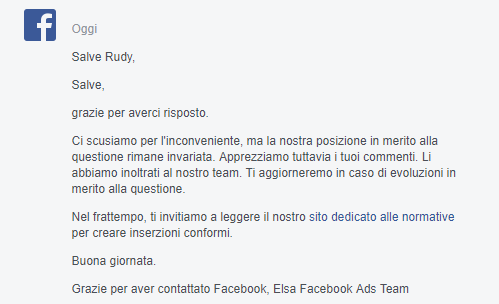 Grazie per aver contattato Facebook, Elsa Facebook Ads Team